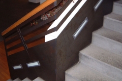 Für ein Verwaltungsgebäude in altem Gemäuer haben wir Treppen- und Podestgeländer aus gelasertem, 8 mm dickem Stahlblech angefertigt und montiert. Die Oberfläche ist natur gewachst. Der Buchenhandlauf ist aufgeklebt.